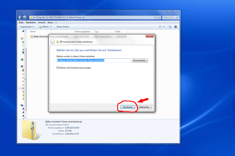 Es öffnet sich ein weiteres Fenster, hier einfach den Button "Extrahieren" drücken.