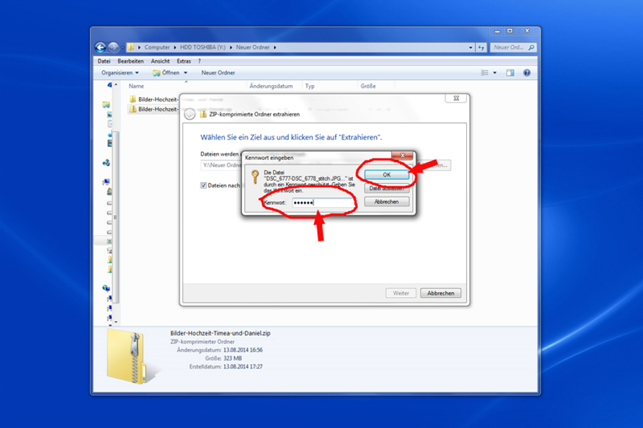 Hat man das Kennwort richtig eingegeben, müsste das Entschlüsseln der Bilder beginnen.